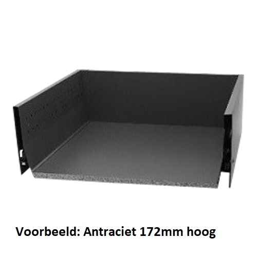 Levering is inclusief: verbinders t.b.v. houten achterwand, ladezijdes, opschroefbare frontbevestiging, kunststof afdekkappen, volledig uittrekbare geleiders met softclosing 50kg.
