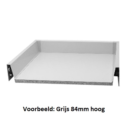 De ladenzijden van 116 mm hoog zijn leverbaar in zeven verschillende dieptes (270, 350, 400, 450, 500, 550 en 600mm) en in drie verschillende kleuren (antraciet, zilvergrijs en wit).