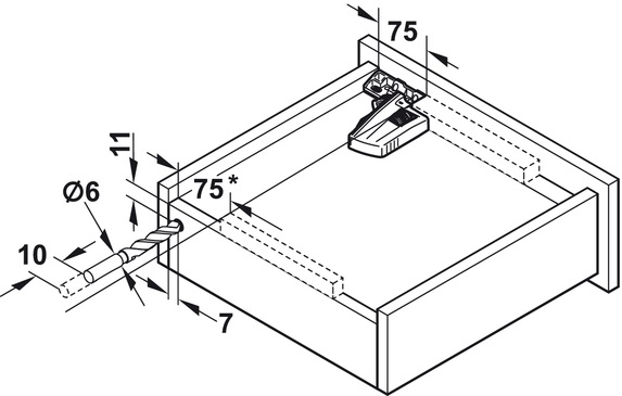 Groter bewegingsgemak licht openen, aangenaam rustige loop en zacht sluiten eenvoudig en variabel af te stellen stabiel en precieze loop, dankzij minimale dalingswaarden Instelmogelijkheid max. hoogteverstelling +3 mm bij de ladegeleider max. zijverstelling ± 1,5 mm bij de koppeling. Materiaal Staal. Oppervlak voorverzinkt. Afmetingen max. ladebreedte SB = binnenwerkse corpusbreedte – 42 mm + 2 x ladezijkantdikte tolerantieweergave: breedte +0/–1,5 mm, diepte ± 2 mm frontvoeg: 0 mm bij Blumotion, 3,5 mm bij Tip-On, 2,5 mm bij Tip-On Blumotion