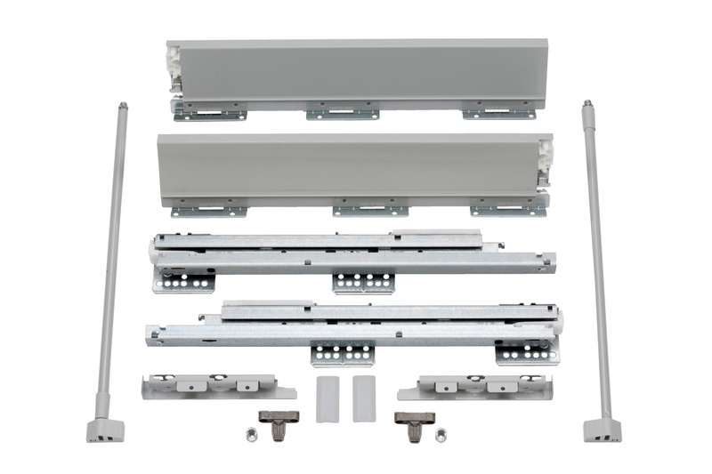 Dubbelwandige stalen laden met geleider incl. softclosing. De volledig uittrekbare geleider met softclosing heeft een draagvermogen van 40kg. Met deze set kunt u zelf elke ladebreedte maken.